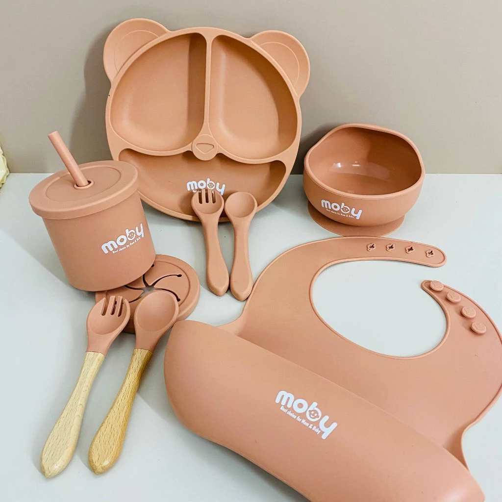 Bộ ăn dặm silicon Moby cao cấp đế chống trượt siêu nhẹ tặng thìa silicon – MejCare