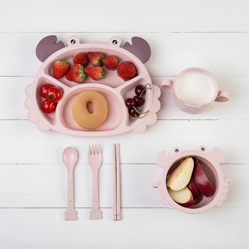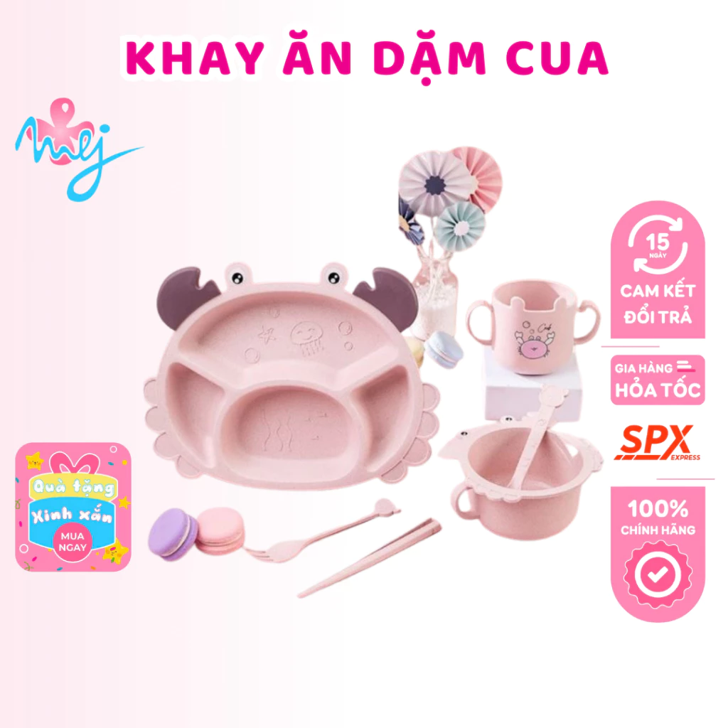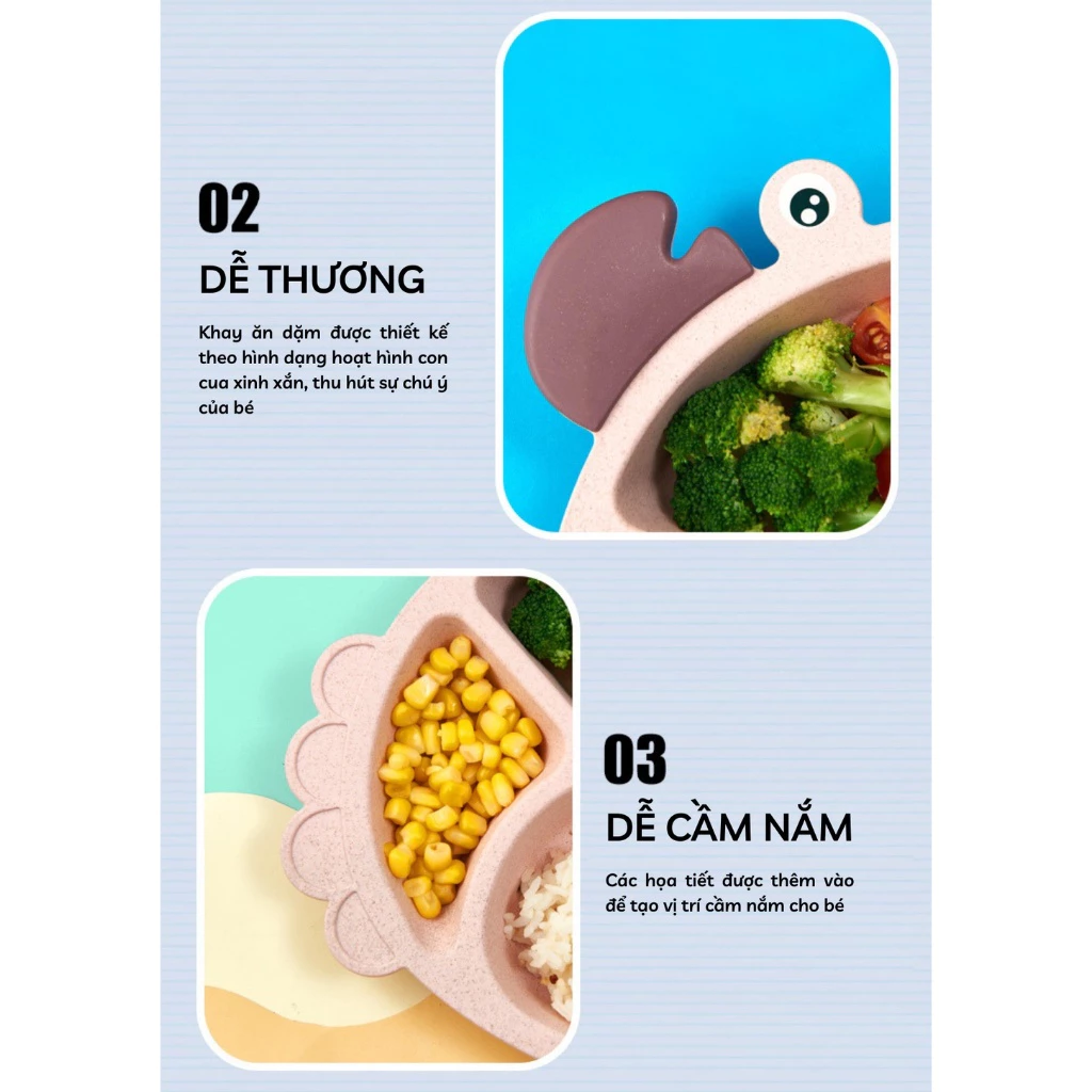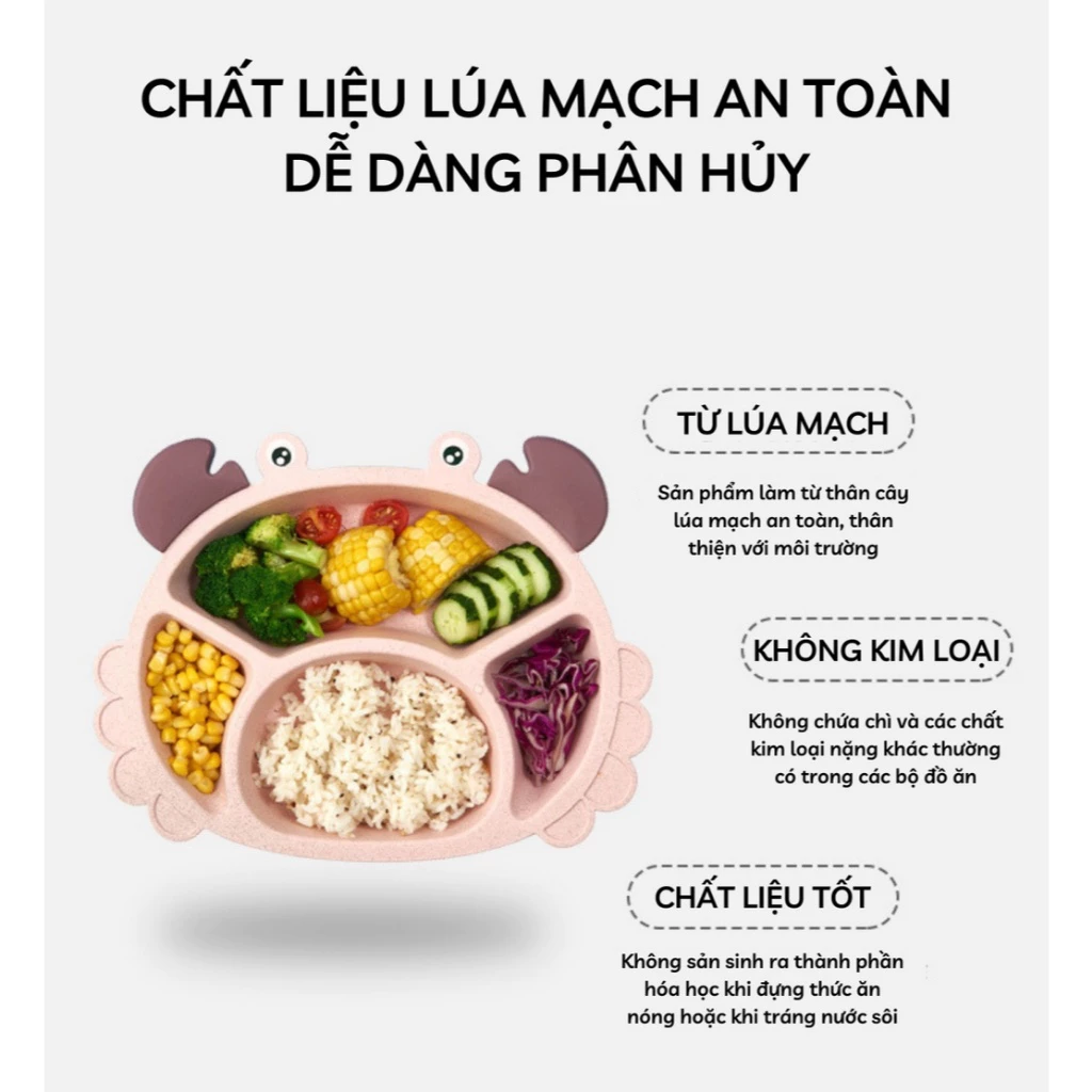 Bộ khay ăn dặm lúa mạch 6 món hình cua đáng yêu an toàn cho bé – MejCare