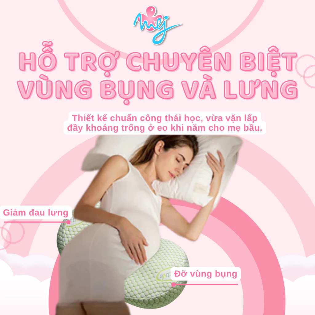 Gối bầu cánh tiên MEJ cao cấp nâng đỡ bụng, giảm đau lưng, giúp mẹ bầu ngủ ngon sâu giấc – MejCare
