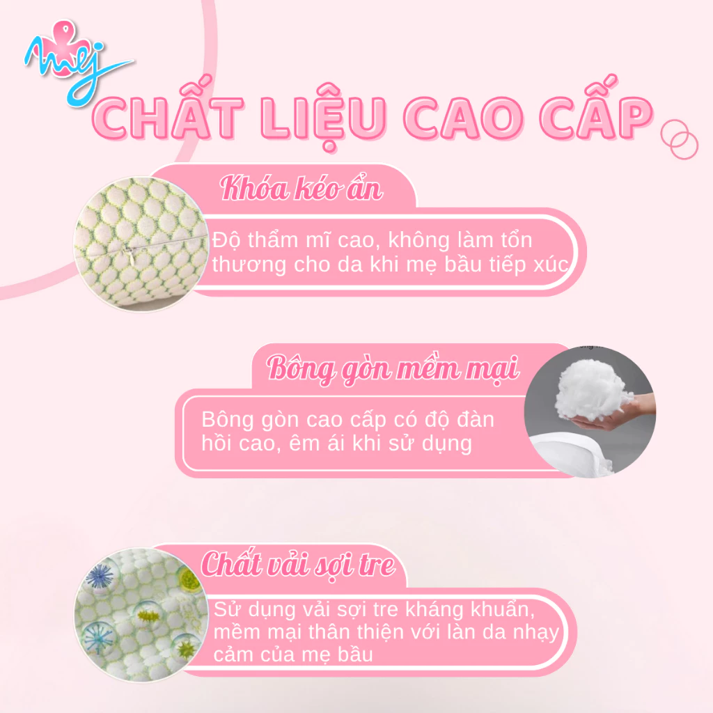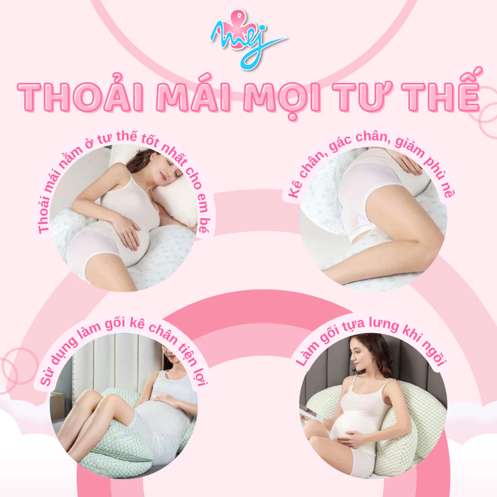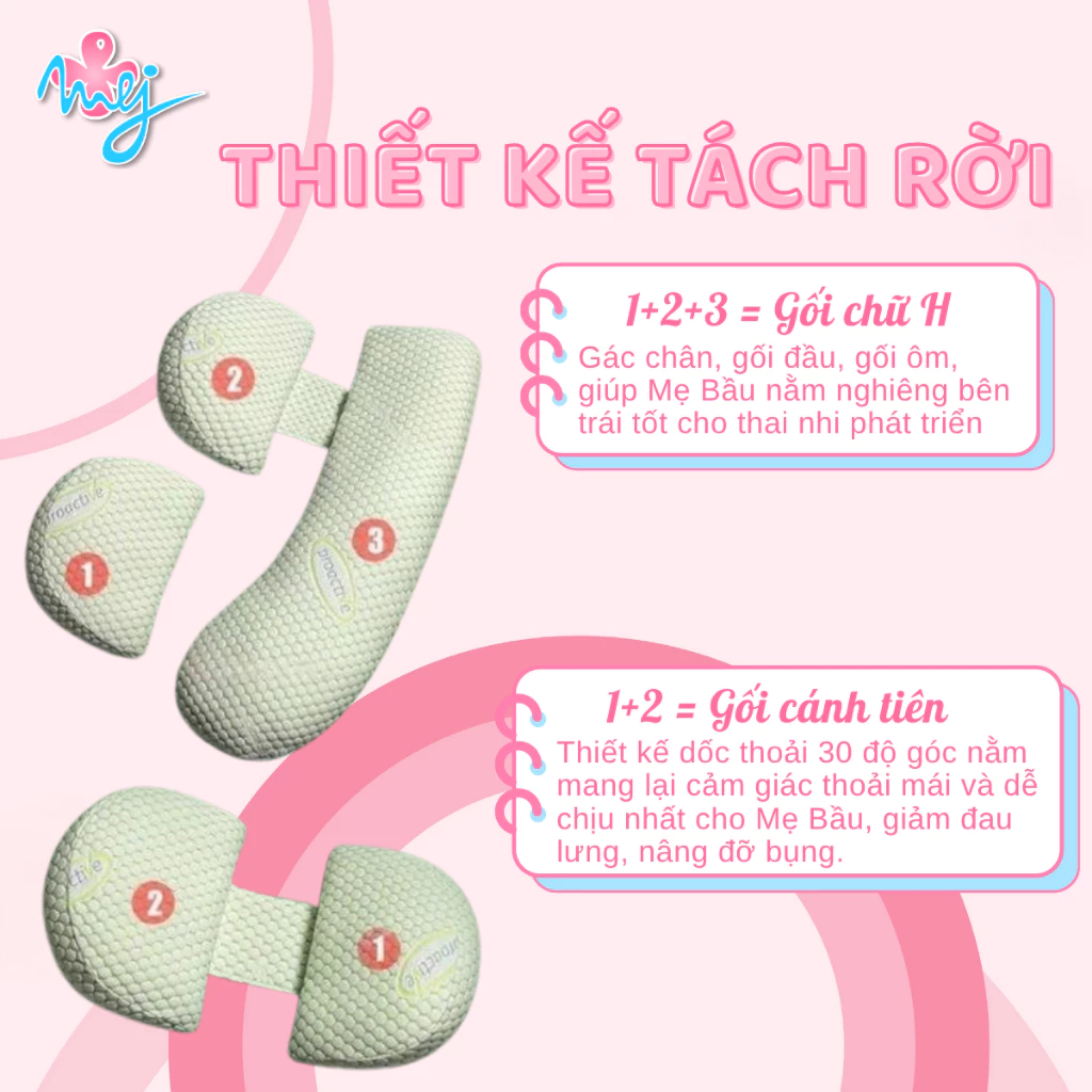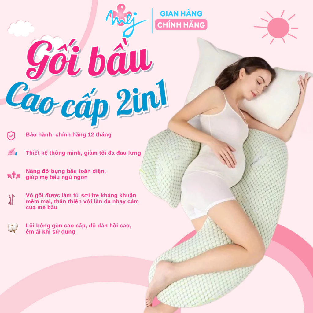 Gối bầu cao cấp 2in1 MEJ gối ôm bà bầu giảm đau lưng nâng đỡ bụng giúp mẹ ngủ ngon – MejCare