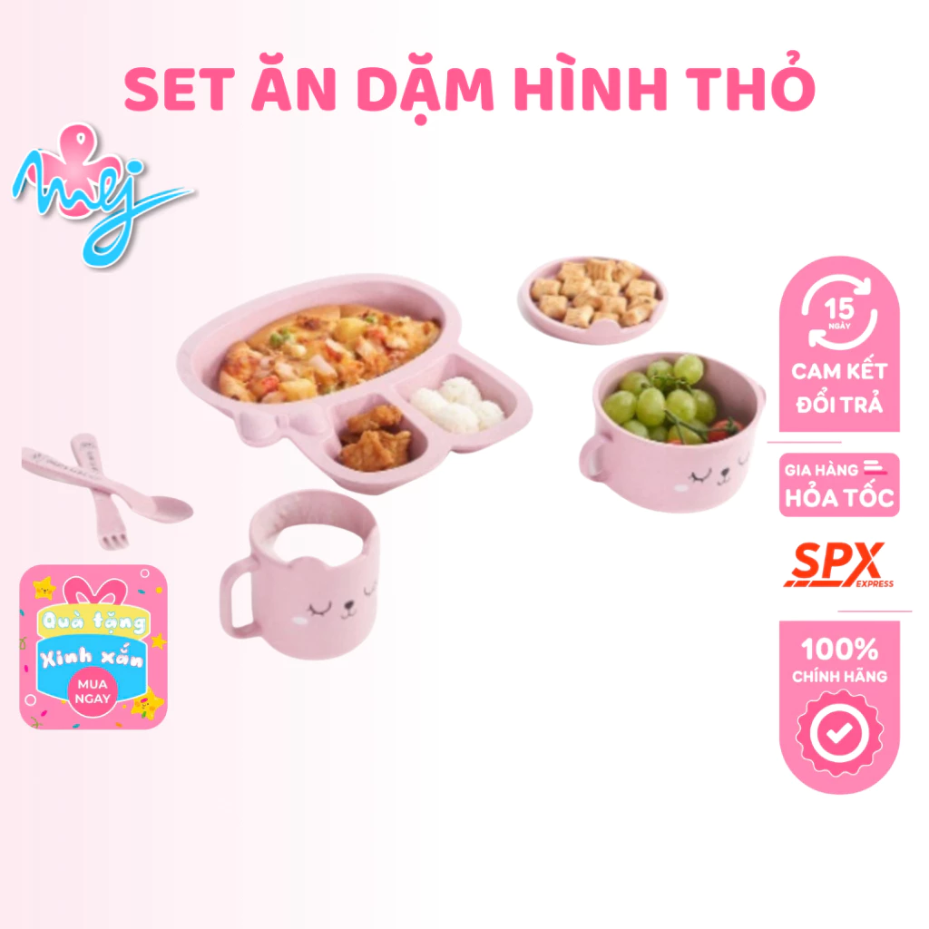 Khay ăn dặm cho bé – khay ăn cơm lúa mạch hình thỏ đáng yêu – MejCare