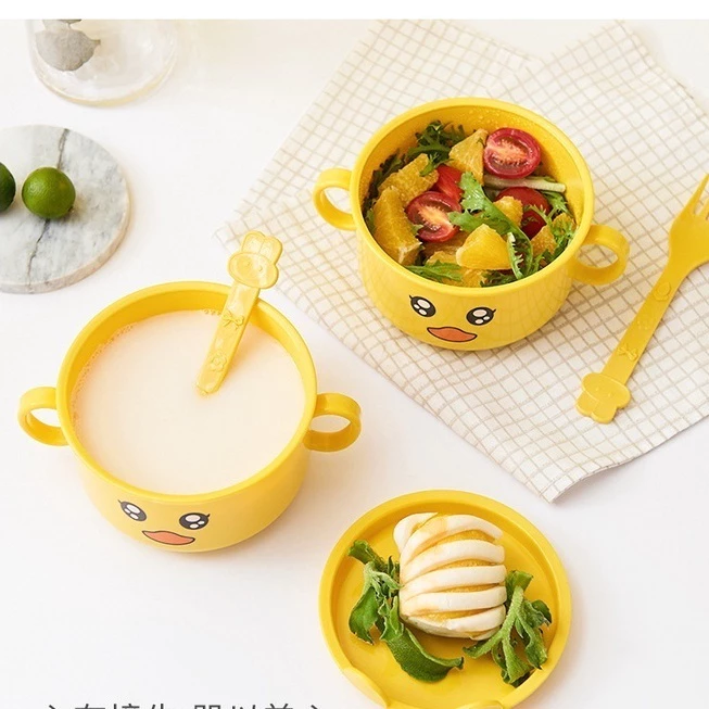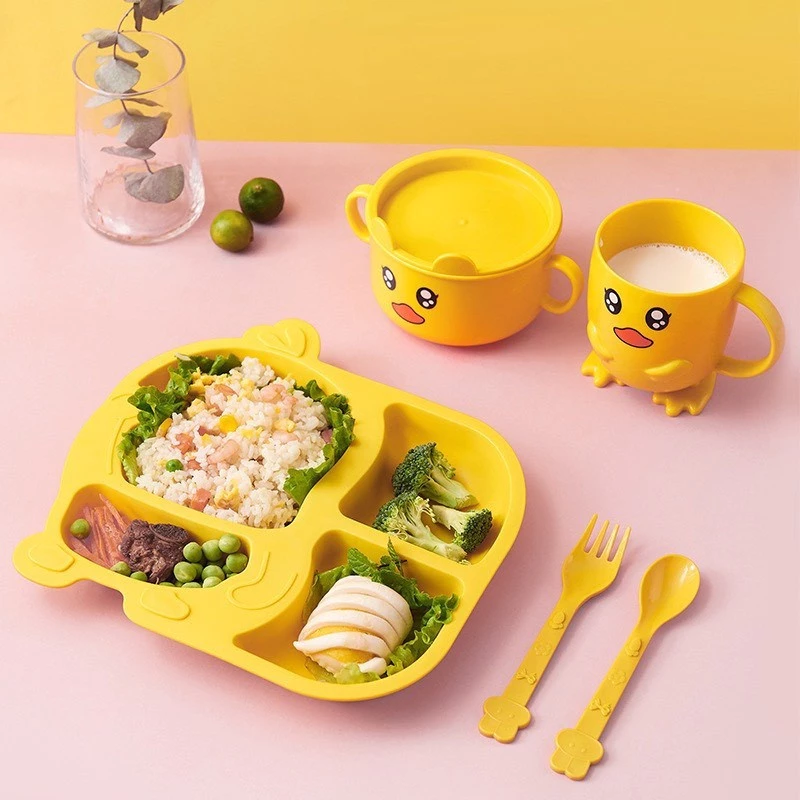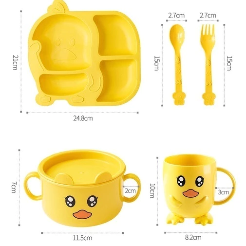 Khay ăn dặm cho bé lúa mạch vịt vàng kèm bát và cốc ngộ nghĩnh – MejCare