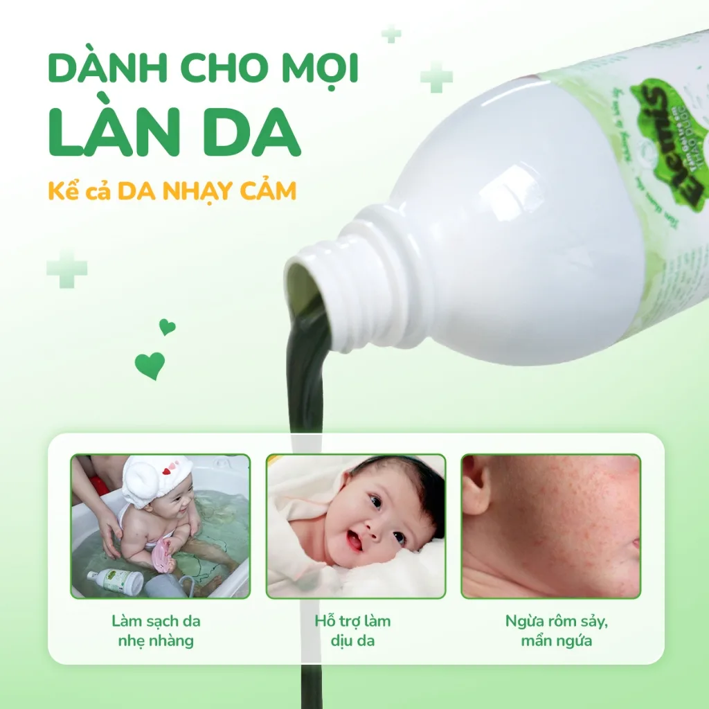– Làm sạch da dịu nhẹ, ngừa rôm sảy, mẩn ngứa, hăm tã, viêm da… hiệu quả.