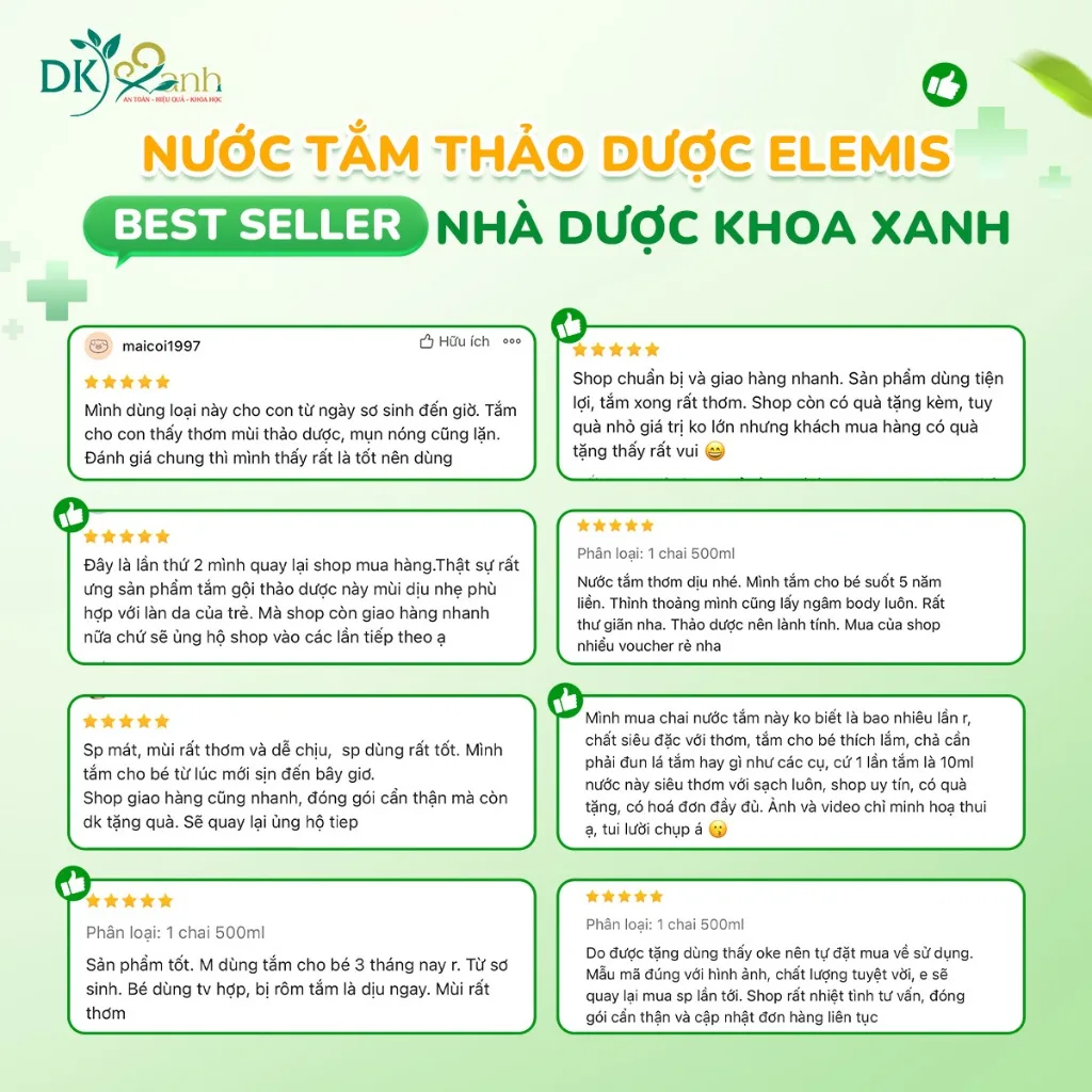 NƯỚC TẮM GỘI THẢO DƯỢC ELEMIS – DƯỢC KHOA XANH – 200ML/350ML/500ML/CHAI – CHĂM SÓC LÀN DA BÉ DỊU NHẸ TỪ SƠ SINH