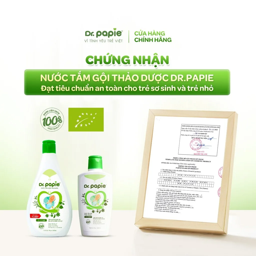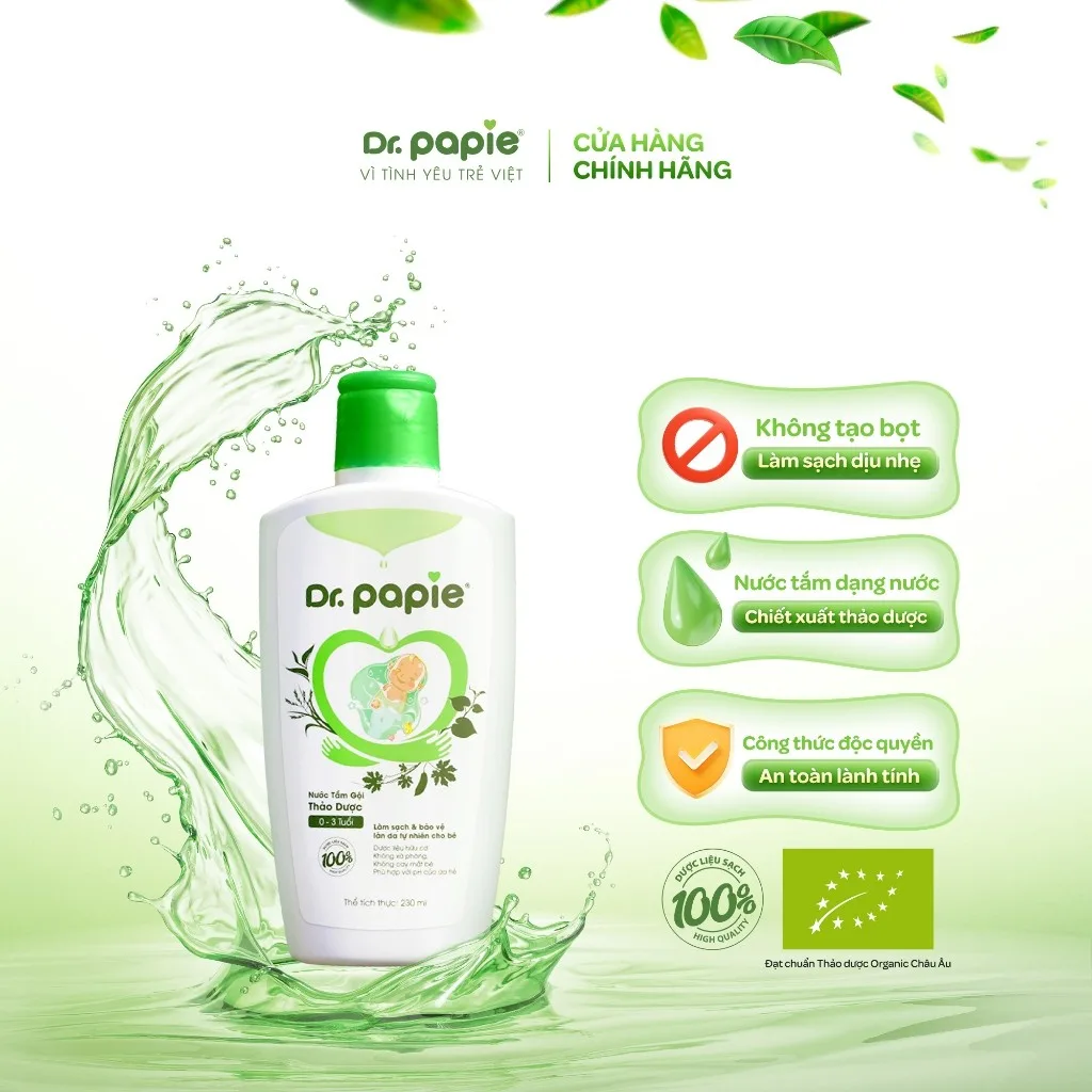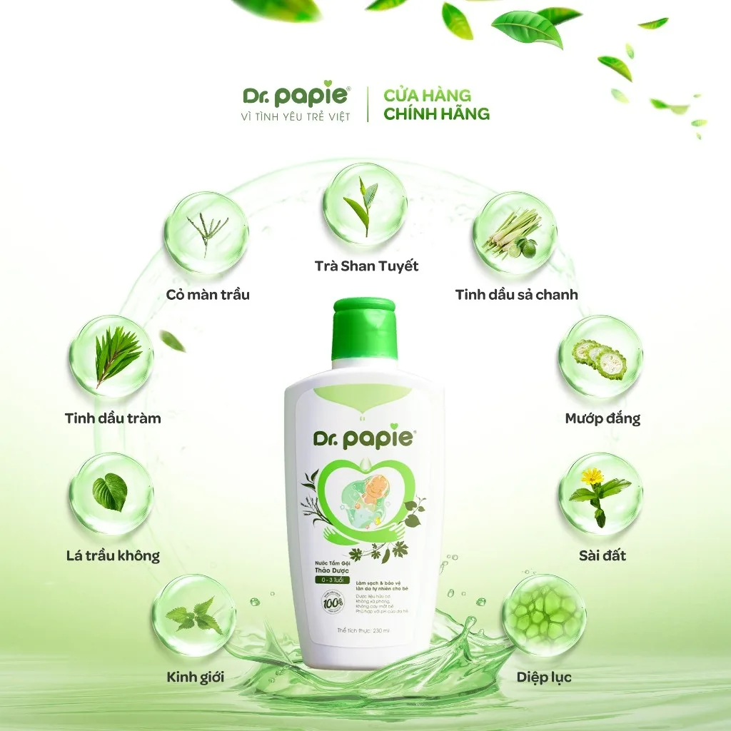 – Nước Tắm Thảo Dược Dr Papie dùng cho trẻ từ sơ sinh đến 3 tuổi