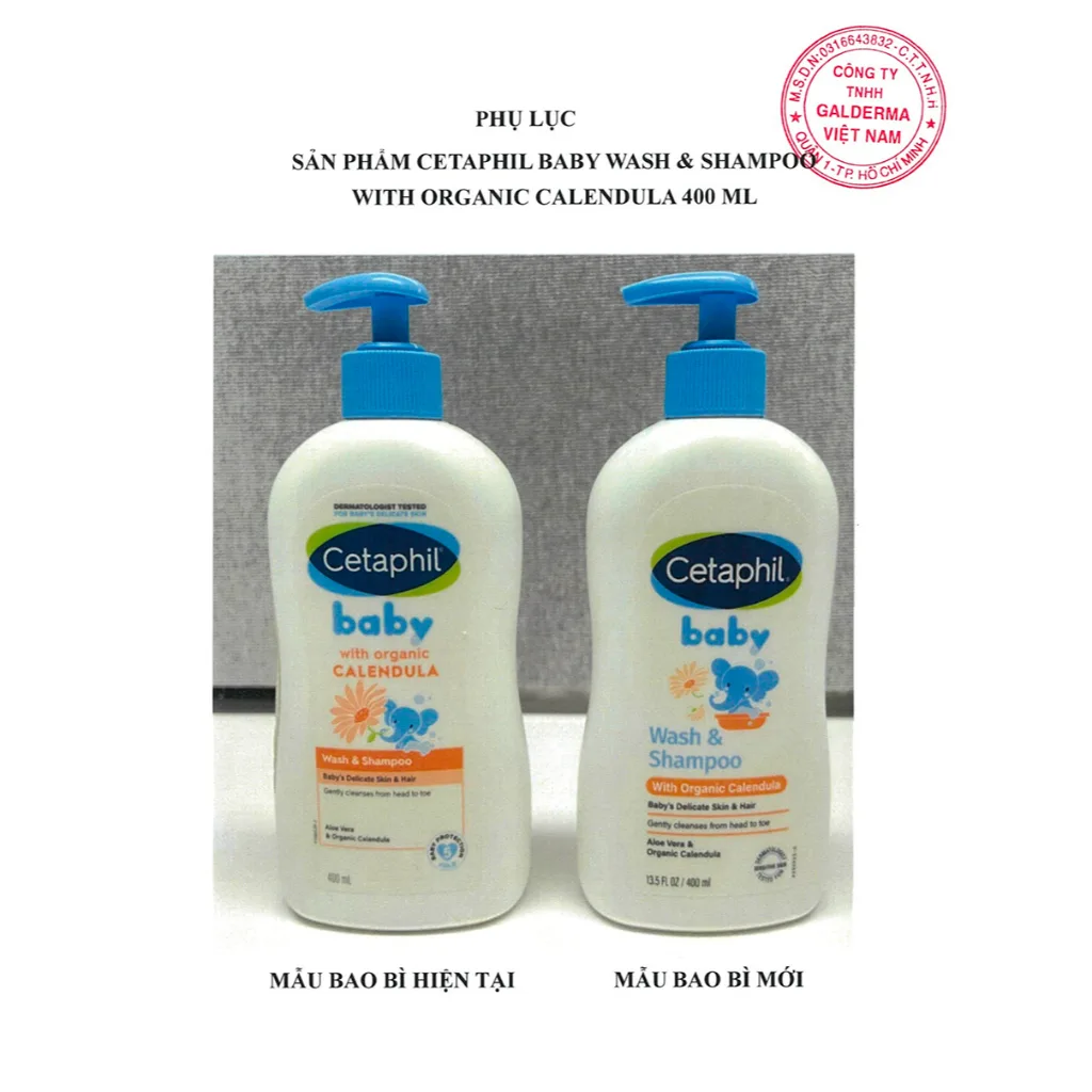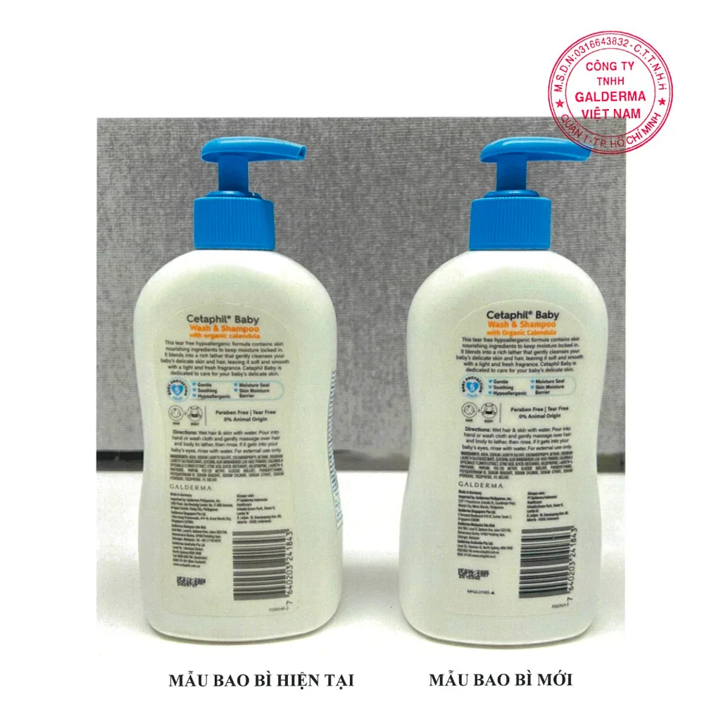 Sữa tắm gội dịu nhẹ cho em bé Cetaphil Baby Wash & Shampoo with Organic Calendula, nhẹ dịu làm sạch da bé, trong khi vẫn giữ được độ ẩm cho da bé mềm mịn suốt 8h.