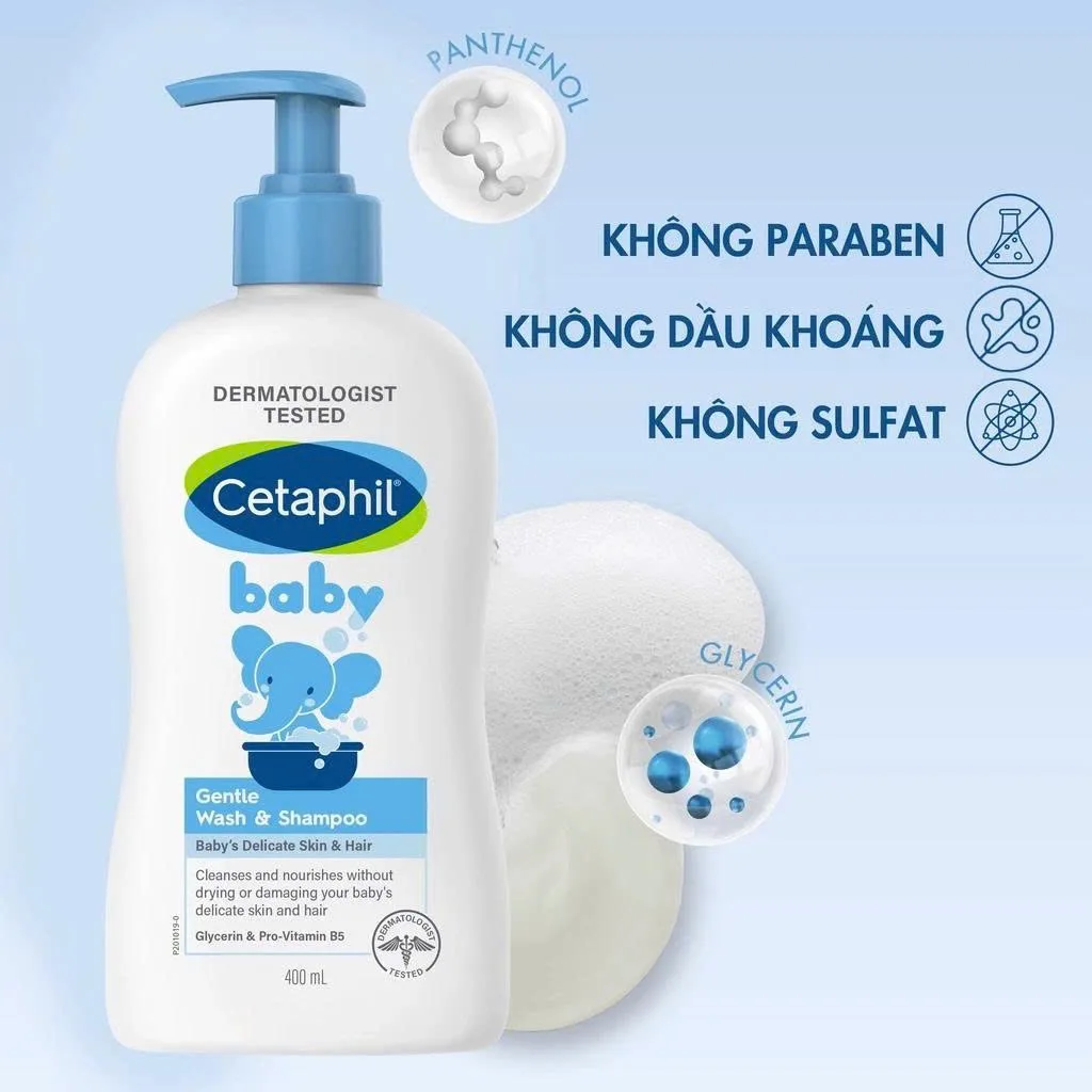 Sữa tắm gội dịu nhẹ cho em bé Cetaphil Baby Gentle Wash & Shampoo, nhẹ nhàng làm sạch da toàn thân của bé, trong khi vẫn bảo vệ và cấp ẩm cho sự phát triển khỏe mạnh của da bé. Nhẹ dịu, an toàn thích hợp cho cả trẻ sơ sinh