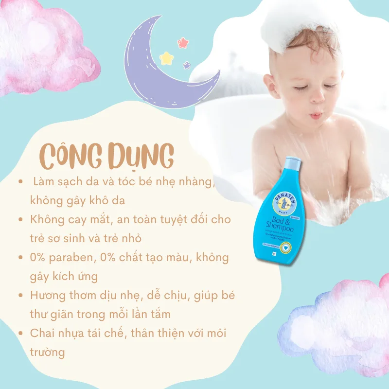+ Làm sạch da và tóc bé nhẹ nhàng, không gây khô da