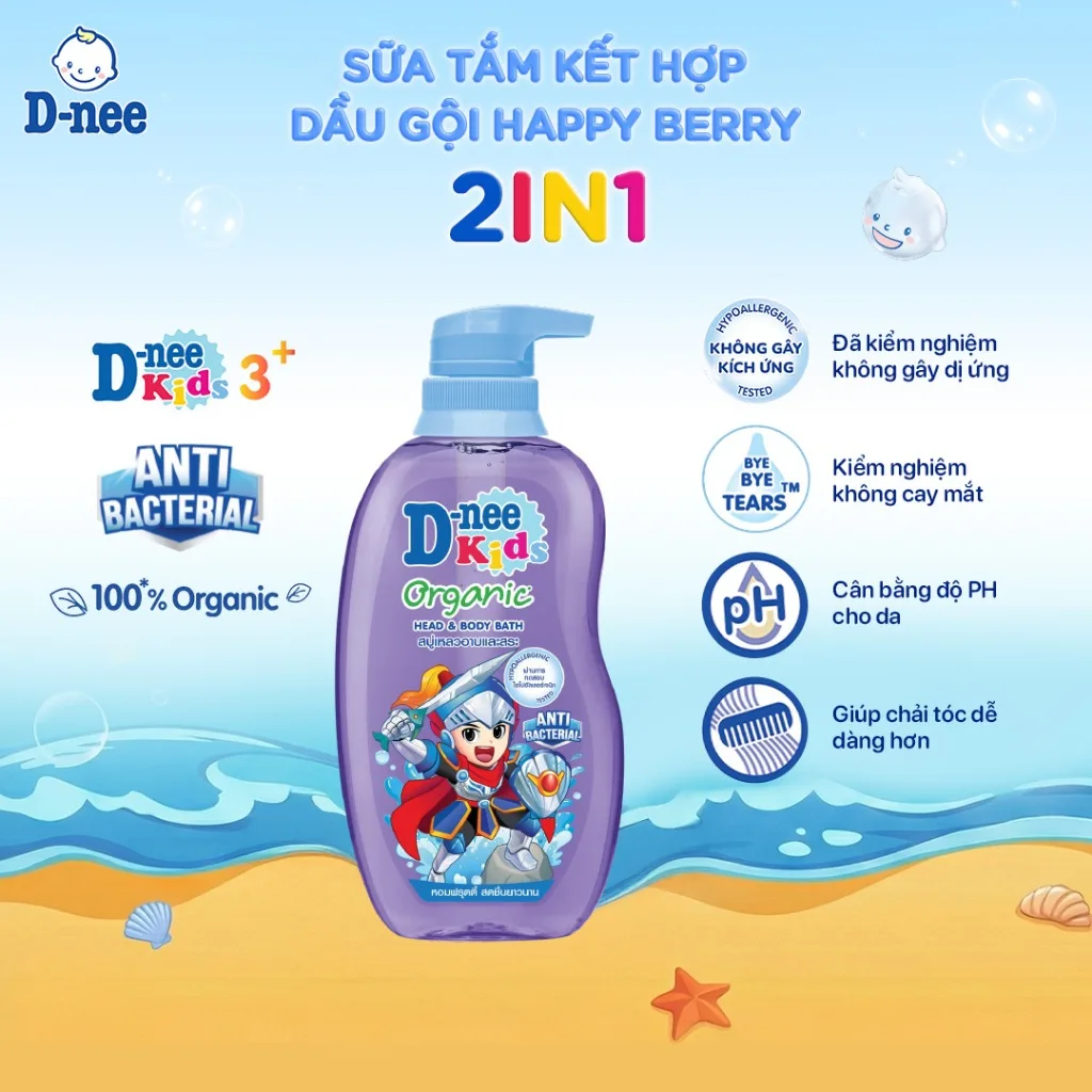 – Tắm gội toàn thân trẻ em D-nee Kids Tím dành cho trẻ em giúp làm sạch da, giúp da mềm mại, mịn màng và giúp tóc trông mượt mà hơn