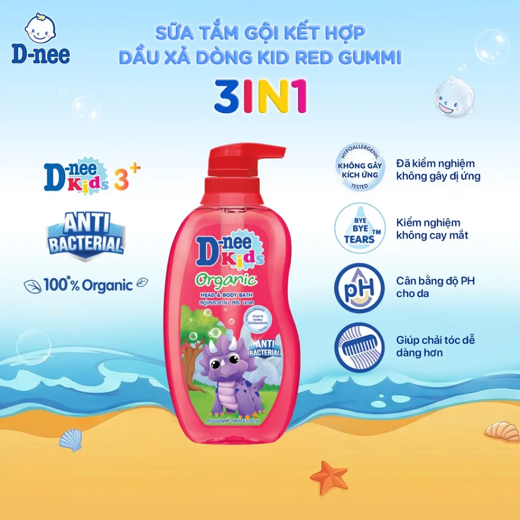 – Tắm gội toàn thân trẻ em D-nee Kids Đỏ dành cho trẻ em giúp làm sạch da, giúp da mềm mại, mịn màng và giúp tóc trông mượt mà hơn
