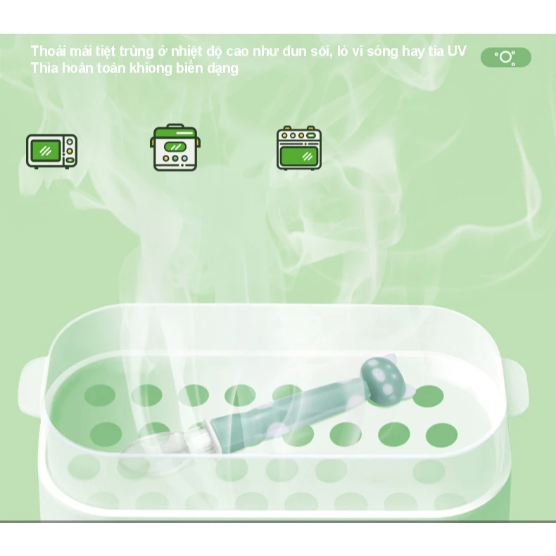 Có thể tiệt trùng bằng nước sôi hoặc lò vi sóng. -