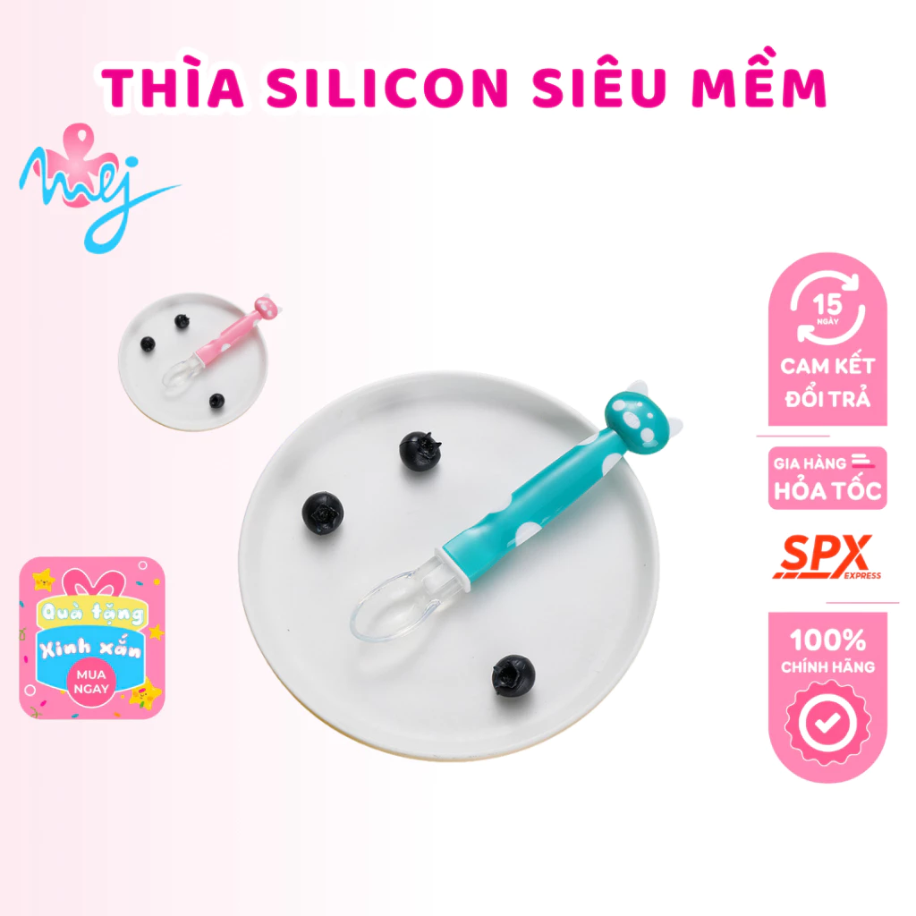 Thìa ăn dặm silicon – thìa ăn dặm cho bé đầu siêu mềm có tai đáng yêu an toàn – MejCare