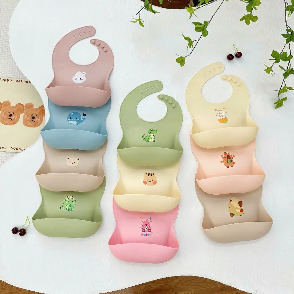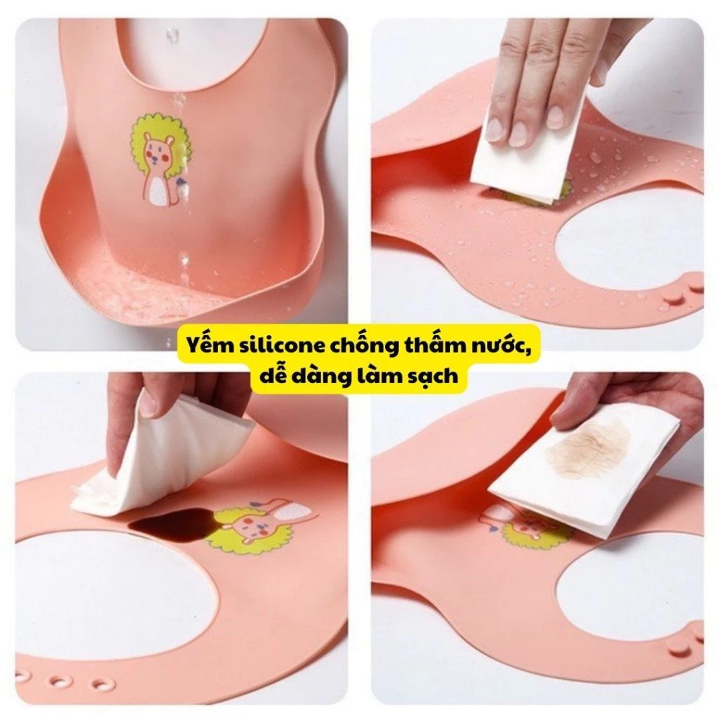 Yếm ăn dặm cho bé silicon có máng chống thấm đồ dùng cao cấp hình thú siêu cute tiện dụng – Mejcare